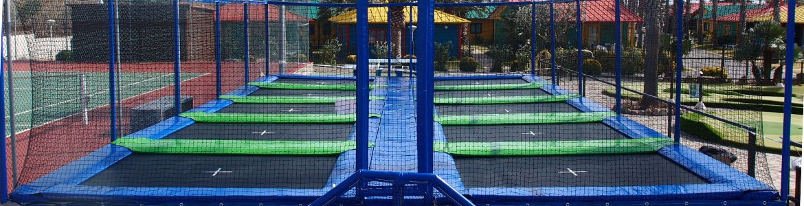 Wählen Sie zwischen 1 und 10 quadratischen oder rechteckigen Sprungmatten und entscheiden Sie sich für eine echte Trampolin-Komplettkonstruktion mit Schutznetz, Schutzrand, der den Zugang unter das Trampolin verhindert, und einer Zugangsleiter mit zwei Stiegen und Handlauf.