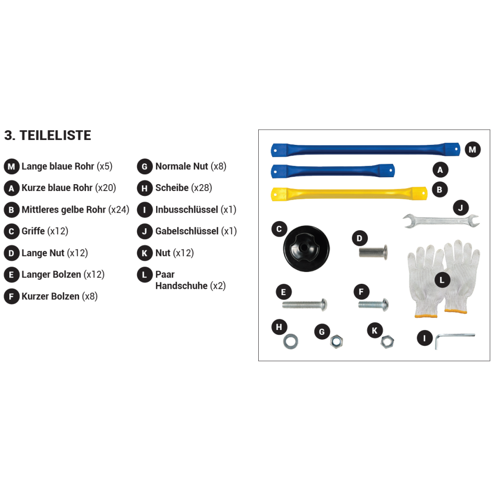 Wählen Sie aus dem Dropdown-Menü das gewünschte Ersatzteil für Ihre 1,80 m hohe Kletterkuppel aus.
