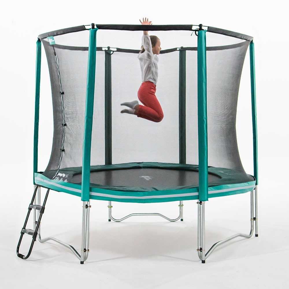 Paket XL für rundes Trampolin Jump‘Up 250 mit Sicherheitsnetz, inkl. Leiter + Verankerungssatz. Maximale Qualität für dieses kleine Trampolin! Ideal für kleine Kinder.