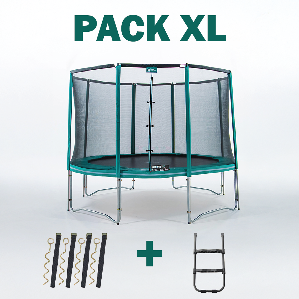Genießen Sie Ihr Trampolin über Jahre hinweg in absoluter Sicherheit mit dem Pack XL Jump'Up 360.