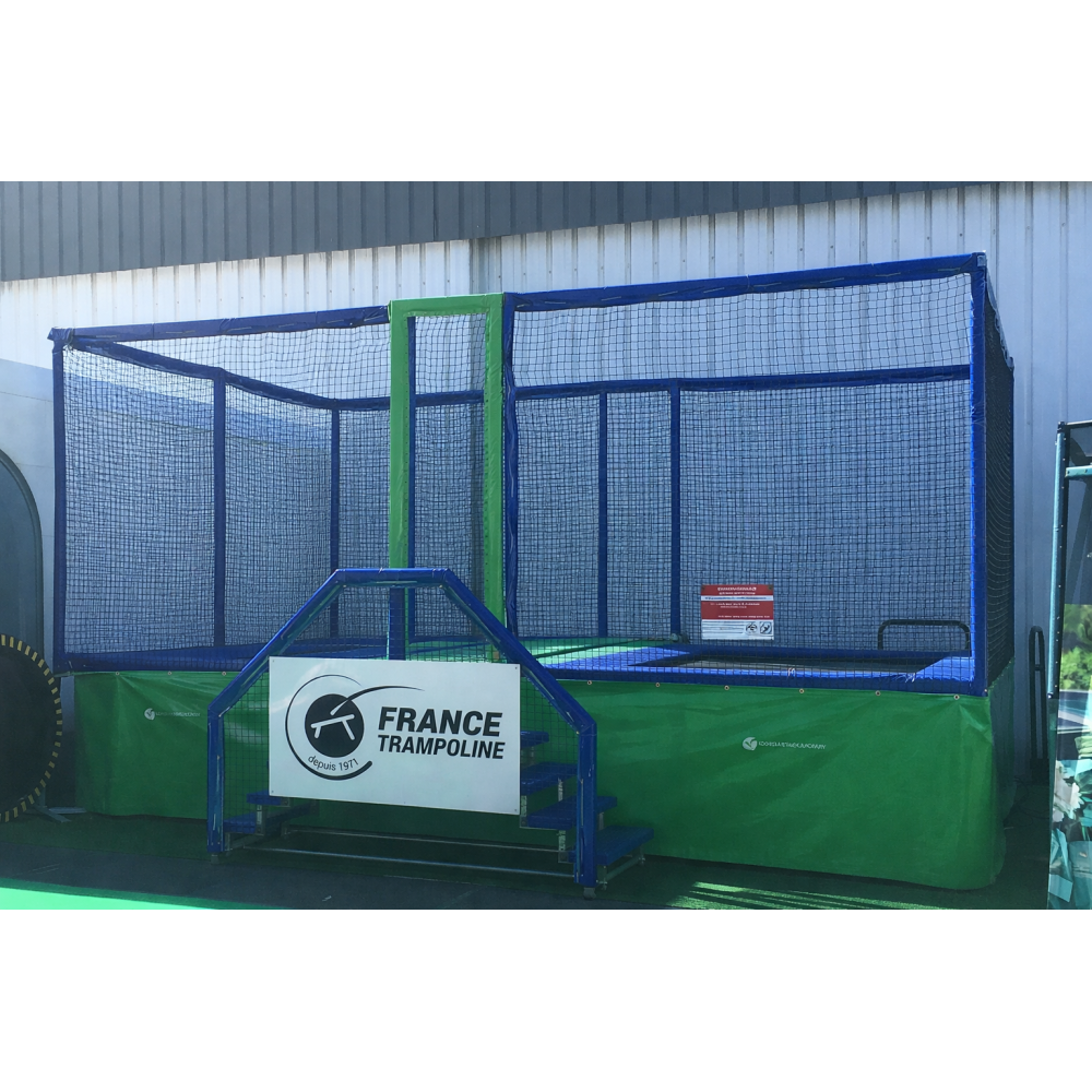 France Trampoline legt besonderen Wert auf die Qualität seiner Trampolinanlagen für den öffentlichen Gebrauch. Die Materialien der quadratischen AERO-Trampolinanlagen werden aufgrund ihrer Widerstandsfähigkeit gegen intensive Nutzung und ihrer Langlebigkeit ausgewählt.